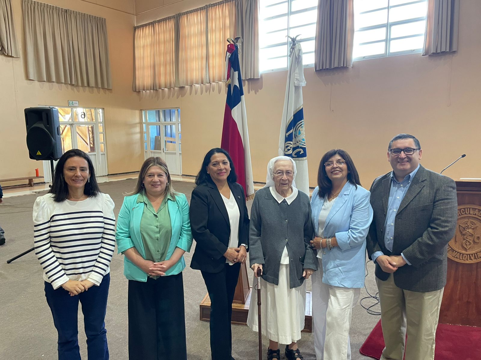En el acto dirigido a los cursos mayores, contamos además con la presencia de Sor Cecilia Poblete, quien fue recibida con el cariño espontáneo de los estudiantes.
