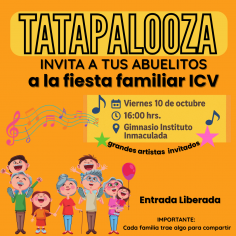 ¡Celebramos juntos la Gran Fiesta de la Familia! Este viernes 10 de octubre se realizará la segunda versión del Tatapalooza, un encuentro organizado por la Unidad de Pastoral de nuestro Instituto, pensado especialmente para celebrar y compartir junto a quienes